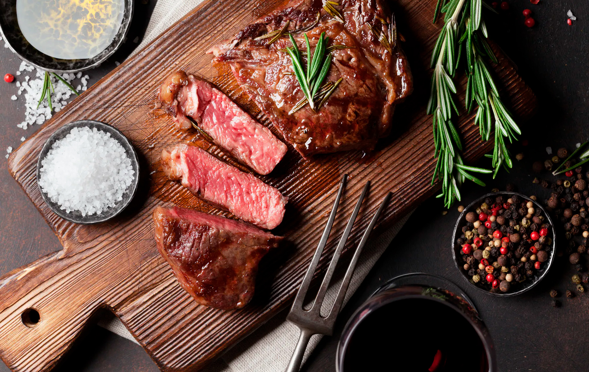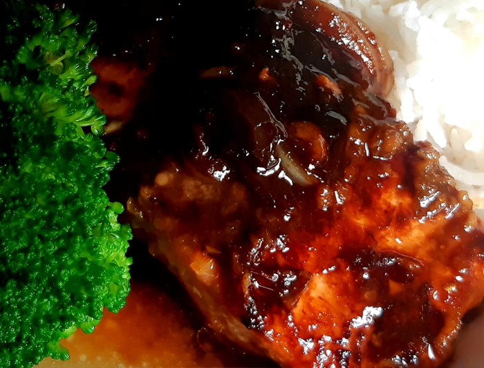 Juicy rack of pork ribs slow cooked in a bourbon marinade.