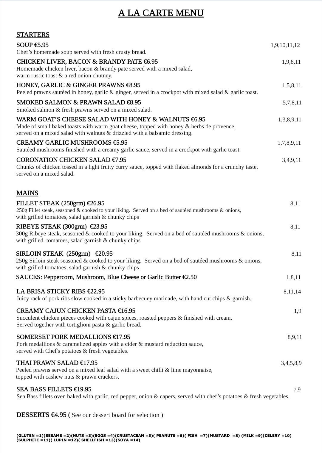 view A La Carte menu